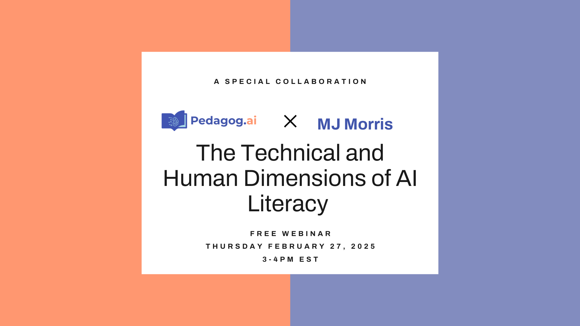 In this webinar, MJ will talk with Pedagog.ai about the various dimensions of AI literacy and key targets within education, including AI Systems, AI Applications, and AI Mindset.